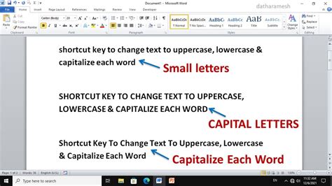 short cut key to convert lowercase to uppercase in word