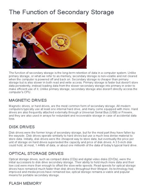 what is the function of secondary storage. There are any references about what is the function of secondary storage in here. you can look below.